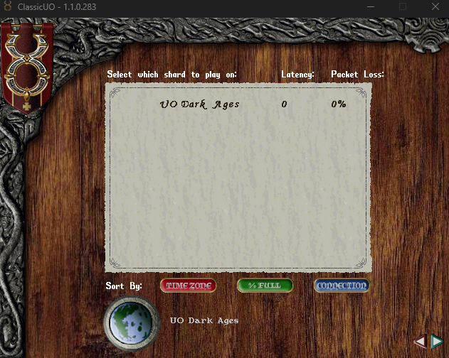 The server uses the standard Ultima Online Classic Client together with ClassicUO. After both are installed you will connect directly to the Dark Ages server and your account will automatically be created the first time you log in.