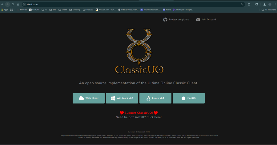 After Ultima Online is fully installed and patched, download and install ClassicUO. Use the version that matches your computer.